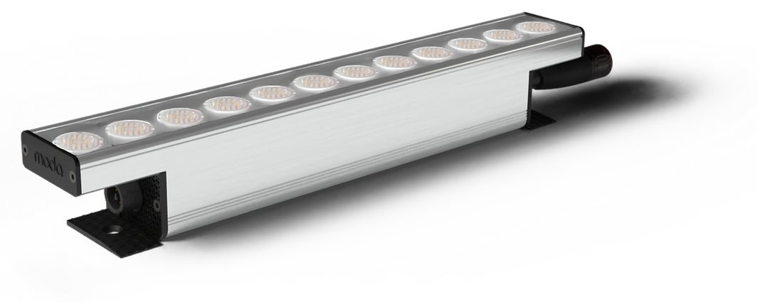 MODA Wash Interior is a new wall washing system with an ability to softly and evenly wash a surface with light with precise beams. Built with new MODA high-CRI high powered LEDs and a choice of six lumen packages from 2W to 12W per foot MODA drivers, and available in 1ft and 4ft fixtures. A huge selection of 29 beam angles to suit a multitude of wall washing applications. Quick-Connect Connectors for rapid installation. Patented integral fixture adjustment which allows for a fluid movement and locks into place. Metal fixing plates resists shearing and rotates up to 90°, with only two screws needed for fixing. Connections have gold plated solid pins for excellent connectivity.